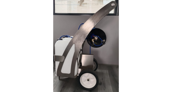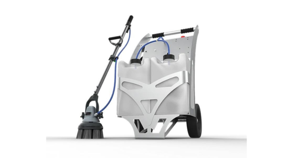 Elle est conçu pour nettoyer les surfaces exterieures avec le moins de travail manuel possible. La mini-monobrosse contient non seulement le système de pulvérisation mais aussi elle est accompagnée d'un chariot inoxydable contenant deux réservoirs d'eau de 25L et un réservoir à détergent de 5L qui assure une meilleure utilisation des produits chimiques.